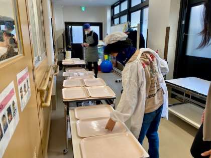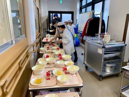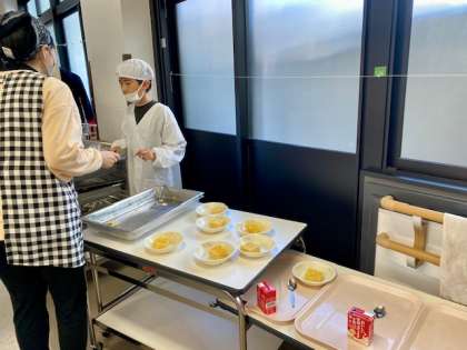 小学部 クラススタディの様子 公開日 2024/11/28 更新日 2024/11/28 小学部 小学部高学年のクラススタディの様子です。 高学年の子どもたちは、一人ひとり係を決めて給食の配膳をしています。おかずを皿に盛りつける係、ストローやスプーン等を配る係、トレイに盛りつけられたごはんやおかずを配る係…と、それぞれの係をしっかりとやり遂げていました。 さすが高学年!!