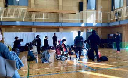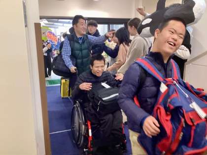 結団式では代表生徒の挨拶がありました。廊下や玄関では、中央分校では恒例になりつつある、学部を超えた児童生徒、教職員の盛大な見送りがあり、たくさんの笑顔の中、生徒たちは元気に出発しました。
