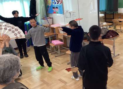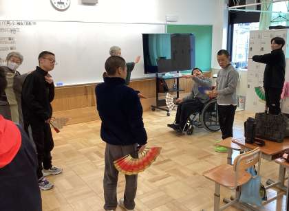 伝統&カルチャーの学習で、伝統文化体験として講師の方に来ていただき、日本舞踊教室をしていただきました。