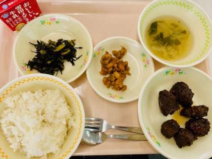 今日の給食では、体の中から元気になってほしいという願いを