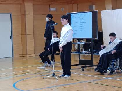 高等部 生徒会選挙 公開日 2025/02/05 更新日 2025/02/05 高等部 来年度の生徒会メンバーを選ぶ選挙を行いました。立候補者は事前にポスター・たすき作りをしたり、演説原稿の内容を考えて練習をしたりして取組をしてきました。 本番は緊張した様子もありましたが、しっかりと自分がどうしていきたいのかを発表することができ、全員当選することができました。 参加した生徒もしっかりと演説を聞いて、投票をすることができました。