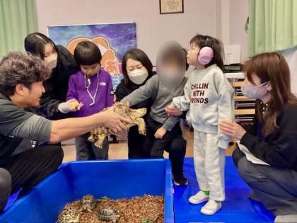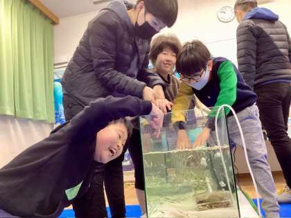 中央分校とつながりのある事業所のご協力のもと、中央分校に移動水族館がやってきました!