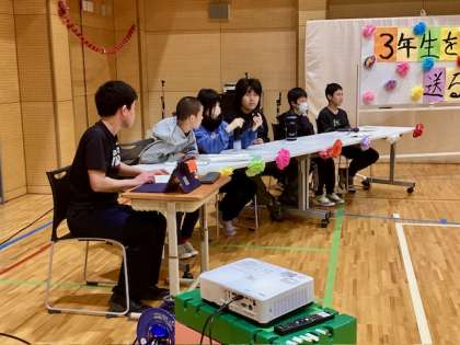 中学部 3年生を送る会1 公開日 2025/03/13 更新日 2025/03/13 中学部 小学部中学部の卒業証書授与式を来週にひかえ、中学部では生徒会メンバーによる司会のもと、「3年生を送る会」がありました。 1、2年生から卒業する3年生に向けてメッセージを送り、3年生からも後輩にメッセージを送りました。どの発表も愛情と「ありがとう」が溢れた発表で、とても温かい雰囲気で感動的な送る会になりました。