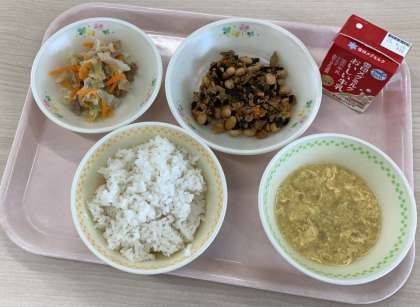 「みそ」は、大豆に米、麦などの穀物と、塩、麹を加えて発酵させて作る発酵食品です。給食では、「豆みそ」「信州みそ」「赤みそ」「白みそ」の4種類を使っています。