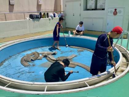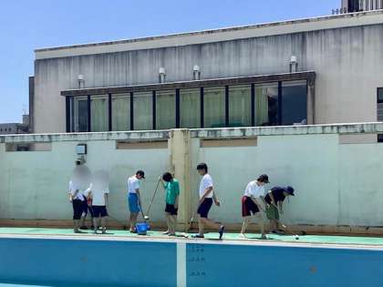 高等部 本校のプール清掃をしました 公開日 2025/06/06 更新日 2025/06/06 高等部 先日、高等部の2つのユニットが、北総合支援学校のプール清掃に行ってきました。当日は、本校の高等部の生徒もたくさん清掃活動をしており、中央分校の生徒も一緒にデッキブラシやブラシを使ってプールの汚れを綺麗に洗いました。 葉や泥で汚れていたプールも、本校と中央分校の生徒のおかげですっかり綺麗になりました。中央分校の代表としてのプール清掃、本当にお疲れ様でした。