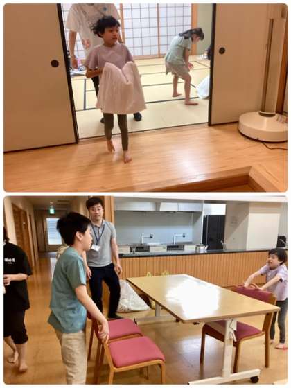 小学部5年生 宿泊学習4 公開日 2025/06/20 更新日 2025/06/20 小学部 続きです。 今朝は、昨日買い物学習で購入した朝ごはんを食べ、使った部屋をみんなで片付けました。布団やシーツ、枕を運んだり、お風呂や床の掃除をしたりしました。「来たときよりも美しく」できたかな? 自分のことは自分でし、友だちとも協力しながら取り組めた1泊2日の宿泊学習でした。