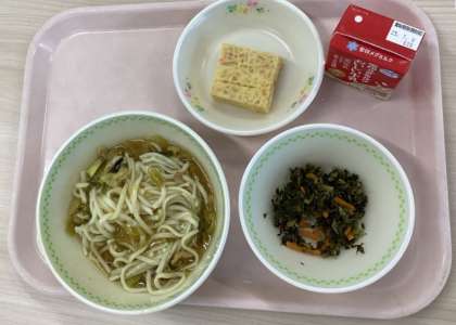 屋さんが発祥だと言われています。給食のカレーうどんは、昆布と