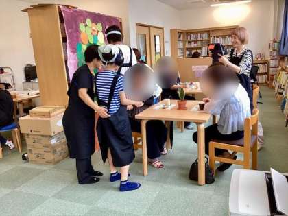 中学部 ワークスタディ製品販売とコーヒーサービスの様子1