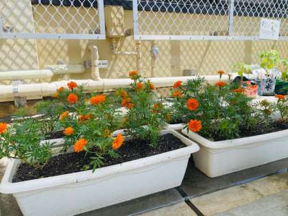 ・下京区社会福祉協議会を通じて京都SKYセンター様より寄贈いただいたマリーゴールです。鮮やかなオレンジ色の花が学校を明るくしてくれています🌸