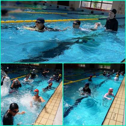本日、京都市障害者スポーツセンターのプールで中学部1・2年生が活動しました。ルールやマナーを守って楽しく活動することができました。快適な環境でアクアビクスや水中ウォーク、泳ぎの練習をみんな笑顔で楽しむ姿が見られました。