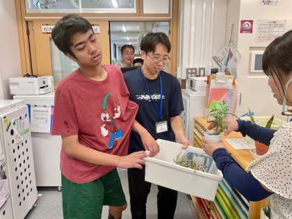役割&コミュニティ班では、観葉植物の回収をし水やりをしてから、再度職員室に届けに来てくれていました。