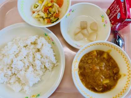 さわやかな甘さやみずみずしくてシャリシャリとした食感が特徴です。この食感は石細胞という細胞が作り出しており、腸の働きを活発にして便秘をを解消する効果があります。そのままでも十分おいしい梨ですが、今日の給食では梨を砂糖水でやわらかく煮て「なしのコンポート」にしています。