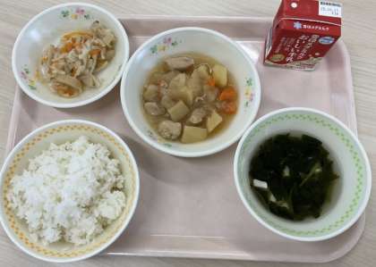本日の給食 公開日 2025/10/01 更新日 2025/10/01 学校の様子 10月1日(水) ・ごはん ・鶏肉と野菜の煮つけ ・切干大根のいために ・豆腐のすまし汁 ・牛乳 ●切干大根● 切干大根は、大根を細く切って乾燥させたものです。乾燥させることで長く保存することができて、うま味も増し、栄養価も高くなります。皮も葉も食べることができるので、食品ロスを減らせます。切干大根は、健康面でも環境面でもすぐれた食品で、『地球にやさしい食事』につながります。