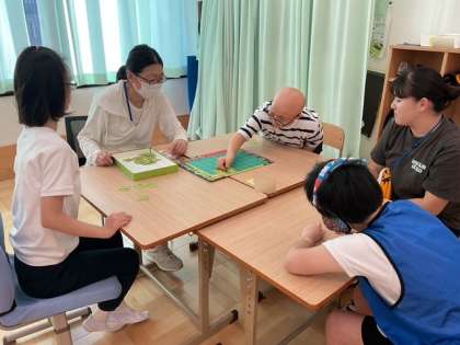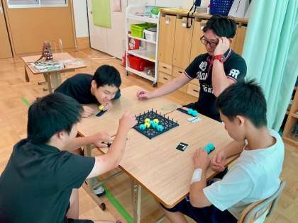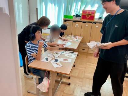 中学部 ライフスタディの様子 公開日 2025/10/17 更新日 2025/10/17 中学部 中学部「ことば・かず・関わり」の学習の様子です。言葉や語彙、数字や数の理解や人とのやりとりすることをめあてに、グループで学習をしています。 食べ物のカードを使って、言葉と物(絵)のマッチングをしたり、その食べ物の数を数える学習や、方向や数、色など手がかりに、ゲームを通してやりとりをする学習をしていました。