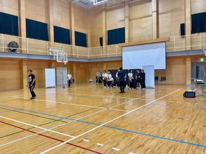 いちょうフェスに向けて(特別時間割がスタート) 公開日 2025/10/24 更新日 2025/10/24 学校の様子 今週から来月に行います「いちょうフェス」に向けた特別時間割がスタートしています。各学年では発表に使う背景を作成したり、体育館では発表の練習が始まりました。 児童生徒の日頃の学習の成果が発揮できるようにと、衣装や背景、小道具に台詞やナレーション…と各学部・学年で創意工夫しながら取り組んでいます。
