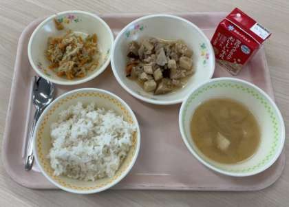 今日の献立「豚肉と高野豆腐の炒め物」には、干ししいたけを使っています。しいたけは秋に最もおいしい時期をむかえ、栄養価も一番高くなります。干ししいたけは生のシイタケを太陽の下で干したもので、そのままだと硬くて食べることができません。ではどうするのか…水で戻してやわらかくした後に他の食材と一緒に炒めたり、煮たりして食べます。しいたけの戻し汁にもうま味や栄養がたくさん含まれているため、捨てずに料理に使いましょう。