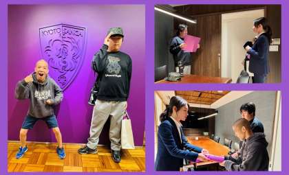 昨日、生徒会長と副会長が中学部を代表して、京都サンガF.C.の皆さまへご挨拶と、お礼の手紙を届けに本社へ訪問しました。