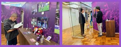 訪問先の本社にはサンガのギャラリーもあり、気持ちも高まり喜ぶ姿や質問する姿が見られました。サンガのコーチのみなさんありがとうございました。