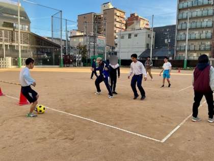 高等部 部活動の様子 公開日 2025/11/14 更新日 2025/11/14 高等部 過ごしやすい気候になり、高等部部活動もグラウンドで活動することが増えてきました。先日の部活動では、チームにわかれてサッカーをしていました。パスを回したり、ドリブルをしたり、シュートをしたり…と白熱したゲームが行われていました。