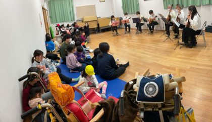 本日,小学部低学年の児童を対象に,『日吉ヶ丘ギター・マンドリンアンサンブル』の皆様にお越しいただき,みんなが大好きなアニメの曲や,季節の楽しい曲をギターとマンドリンの繊細かつ迫力あるサウンドで聴かせていただきました。音楽に合わせて身体を動かしたり,拍手をしたり,それぞれの楽しみ方ができました。やはり本物に触れるというのは大事な経験だなと改めて感じました。本日は中央分校まで演奏に来ていただいて,本当にありがとうございました。