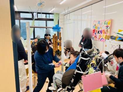 今日は、小学部は縦割りのライフスタディ(身体・スポーツ、ミュージック)、中学部は学年ライフスタディ、高等部はワークスタディの授業を参観していただきました。