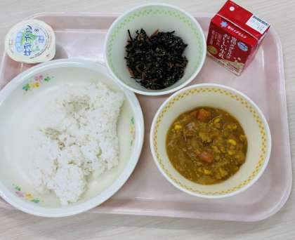 キーマカレーはカレーの本場であるインドで誕生したカレーです。「キーマ」には「細かいもの」という意味があります。今日の給食の「キーマカレー」は鶏のひき肉やコーン、細かく切った人参、玉ねぎが入っています。手作りのルーを加えてじっくり煮込み、コクのあるキーマカレーに仕上ました。