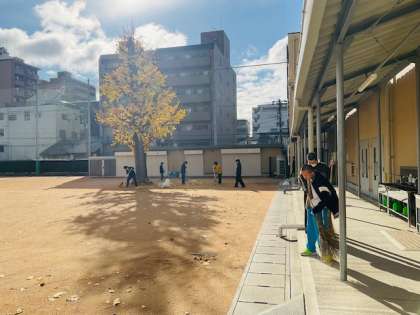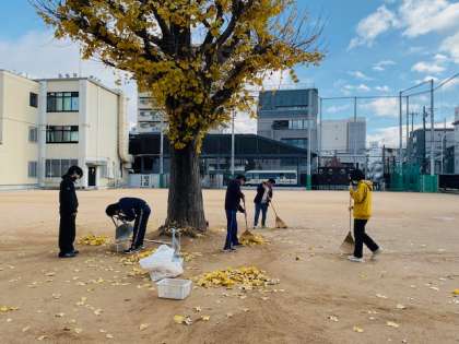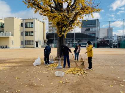 高等部 ワークスタディの様子 公開日 2025/12/15 更新日 2025/12/15 高等部 高等部 ワークスタディ「協働ファーム」の学習の様子です。 中央分校のシンボルツリーいちょうの木がきれいに色づき、黄色い葉がたくさん落ちる季節になりました。協働ファームの生徒たちが、グラウンドに落ちたたくさんの葉をほうきで集めてくれていました。 みるみるうちに葉が集められ、グラウンドはすっきり綺麗になりました。