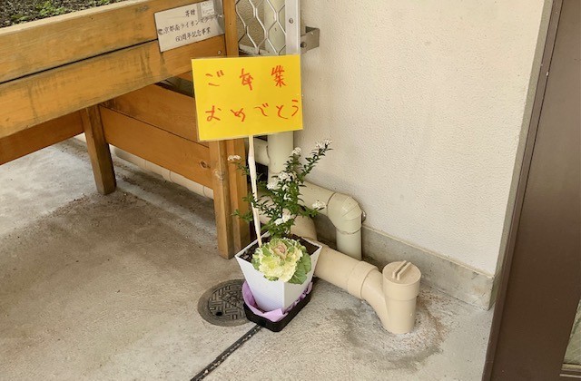 明日に向けて、高等部ワークスタディ「協働ファーム」の生徒たちが、花道となる渡り廊下を飾ってくれていました。