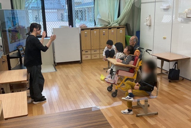小学部の様子です 公開日 2026/04/16 更新日 2026/04/16 小学部 先生や映像を見ながら大きく体を動かして、楽しそうに準備体操やダンスに取り組んでいました。 また手遊びの活動では、音楽やリズムを合わせようと頑張っていました。