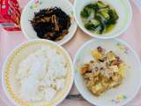 <10月28日(月)の献立> ・ごはん ・高野豆腐とさつま芋のみそ煮 ・...