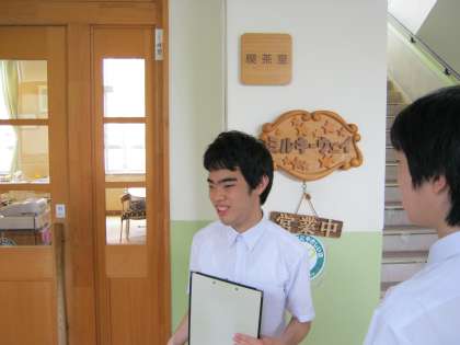 「みなさん、おはようございます。情報印刷の○○です。専門教科『情報印刷』の紹介をはじめます。よろしくお願いします。」「こちらが、ミルキーウェイです。」と、学校紹介や学校案内に向けての練習を行いました。