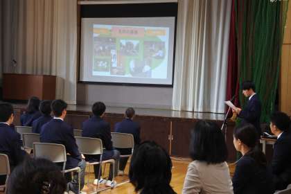 現在,学校全体の学習活動で花や緑を活用したプロジェクトに取り組んでいます。そこで後期始業式後に,そのプロジェクトについて,生徒会からプロジェクトの名前を募集する呼掛けをおこないました。