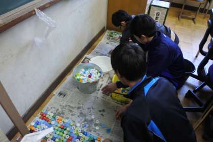今までコツコツ集めていたペットボトルキャップを今日,京都市体育協会へ寄付しました。今回寄付した量は約1400個分です。