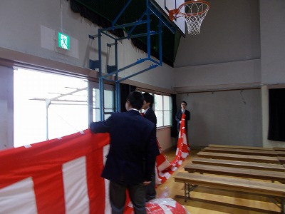 新入生を気持ちよく迎えることができるように、2・3年生が式場の準備や校内の清掃に取り組みました。