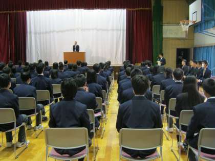 企業で働くことを目指す生徒にとって,卒業後,多くの方に出会います。社会の一員としての役割を担い,協力して,物事にあたります。学校生活の中で,仲間と協力して,色々なことを成し遂げて,卒業後にもその力を発揮してほしいとのお話に,生徒達は顔をあげてしっかり聞いていました。