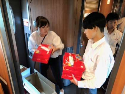 生活係が、お弁当を配布します。いよいよ昼食タイム。