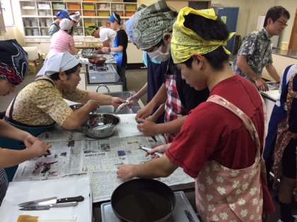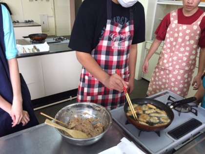 さつま揚げづくり体験は、魚を開くところから、自分たちでやりました。醤油やお酒、塩、味噌、片栗粉、砂糖などの調味料と一緒にミキサーで混ぜて、油で揚げました。
