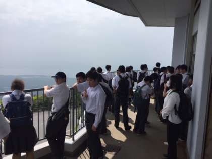 展望所から、桜島の山頂や錦江湾を眺めています。