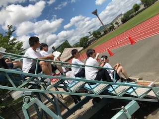 本日の陸上記録会は、朝の準備は各専門教科で構成しているブロック会が役割を分担しています。計時、記録や得点係などは、生徒達で分担して運営しています!