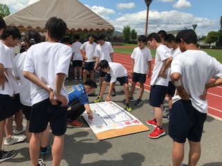 まもなく最後の競技「リレー」が始まります。得点の集計にも熱が入ります。