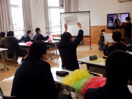 1月29日(金)の3年生の選択音楽の授業で,第三錦林小学校の育成学級とZOOMを利用して音楽会をしましたが,そのお礼として,小学生たちが「おもてなしZOOM交流」を開いてくれました。