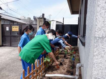 「ひまわりの絆プロジェクト」のご縁で、川端警察署にも『ひまわりの苗』を植えに行きました。警察の方々と一緒に「大きく花開きますように!」と願いながら植えていきました。