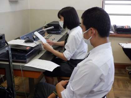 夏休み前最後の登校日の全校集会では,生徒会役員の司会のもと,今回も放送で行いました。「姿勢を正して,礼!」とアナウンスされると,各教室で聞いている生徒たちが一斉にお辞儀をして始まりました。