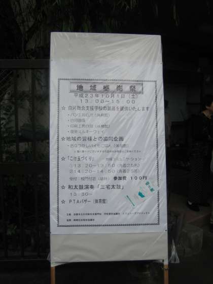高齢者福祉委託事業の配食サービスボランティアをされている地元の皆様からは、昔なつかしい芋ごはんをご用意いただきました。また、音楽のデリバリーサービスをされている地元の皆様からは、ギターとアコーディオン、パーカッションによる演奏を披露いただきました。いつも懇意にしていただいている、地元社会福祉協議会の皆様や、学校周辺の皆様、高齢者体操教室の皆様にも、支えていただき、また、大いに盛り上げていただきました。本校保護者の皆様によるバザーも大盛況でした。