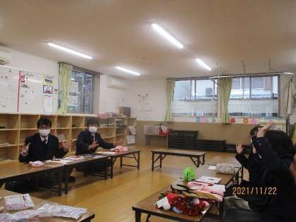 この日は児童館の指導員の方たちとの打ち合わせで,自分たちの考えた企画を提案しました。「より楽しい会となるように」みんなで一生懸命考えています。