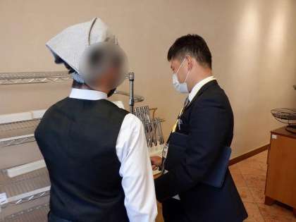 ミルキーウェイ(喫茶)再開に向け,教職員をお客様に見立て,シミュレーションをしました。