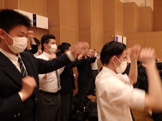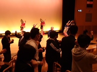 実際に踊り方を教えてもらって,鑑賞席で実際に身体を動かして体験しました。