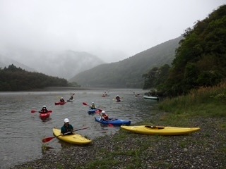 晴天とまではいきませんが,昨日よりは天候が良くなり,カヌー体験ができました。
