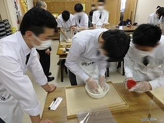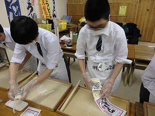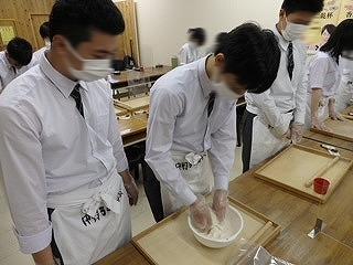 うどん打ち体験の様子です。