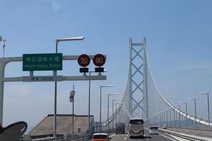 途中休憩を取りながら,明石海峡大橋を渡りました。SAではとてもいい天気で気持ちがいいです。